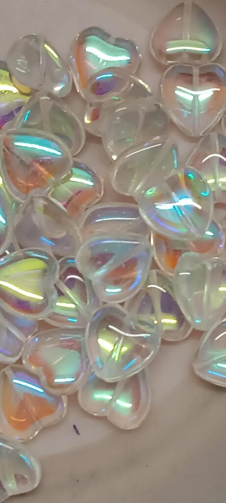 Mezi každý 3. korálek z minerálu navlékněte šatonovou rondelku, do středu náramku transparentní práskané srdíčko ze skla a máte hotovo!