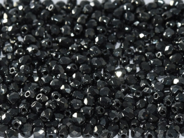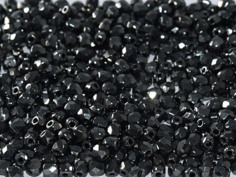 Skleněné broušené korálky, průměr 3 mm, barva hematit.