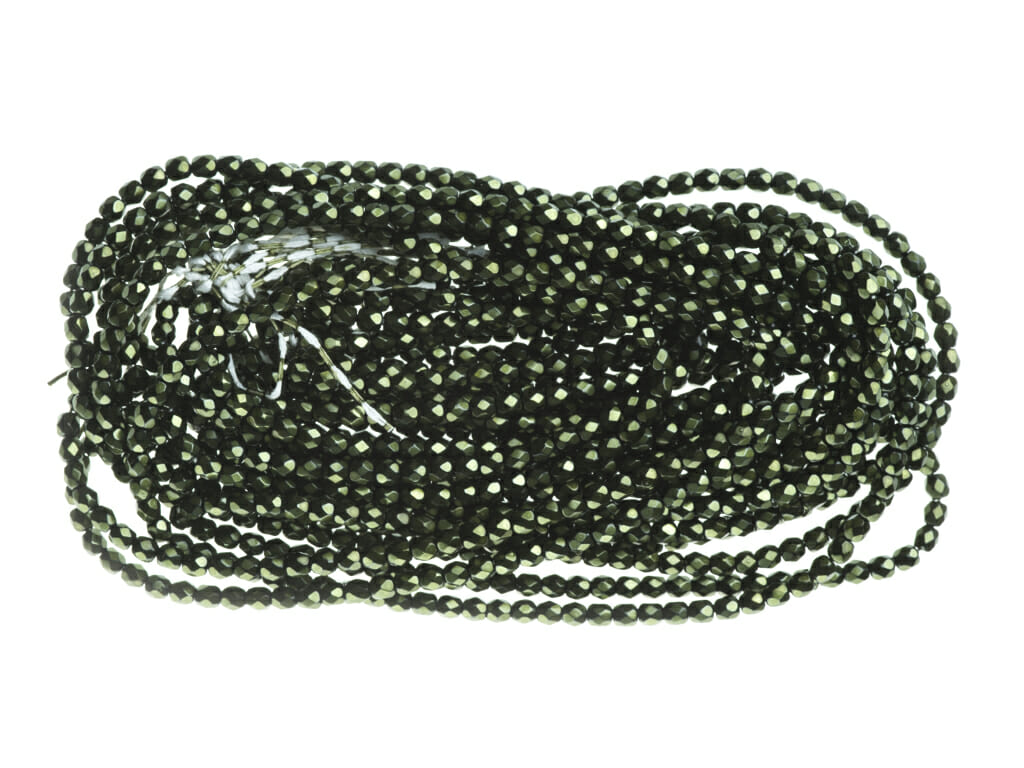 Skleněné broušené korálky, průměr 4 mm, barva černá s úpravou 23980/70829, tmavě zelená.