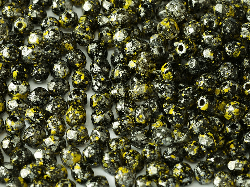 Skleněné broušené korálky, průměr 4 mm, barva černá s úpravou 23980/45701, žluto- černá.