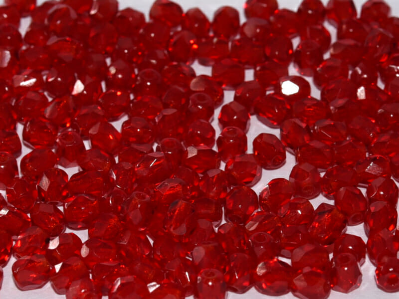 Skleněné broušené korálky, průměr 4 mm, barva červená 90080.