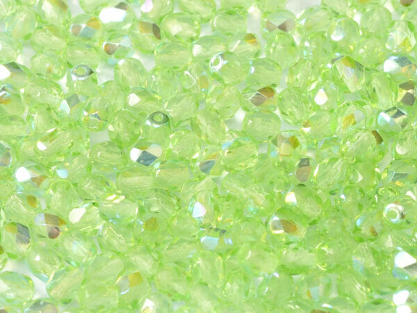 Skleněné broušené korálky, průměr 4 mm, barva světle zelená s pokovem AB 50800/28701.
